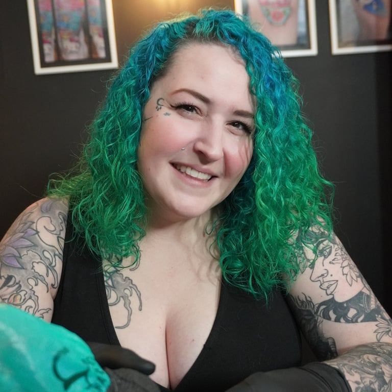 Alexandra specializes in color tattooing, adopting varied styles such as animation, realism, fine line, floral, dot work, mandalas and delicate lettering, while mastering black and gray