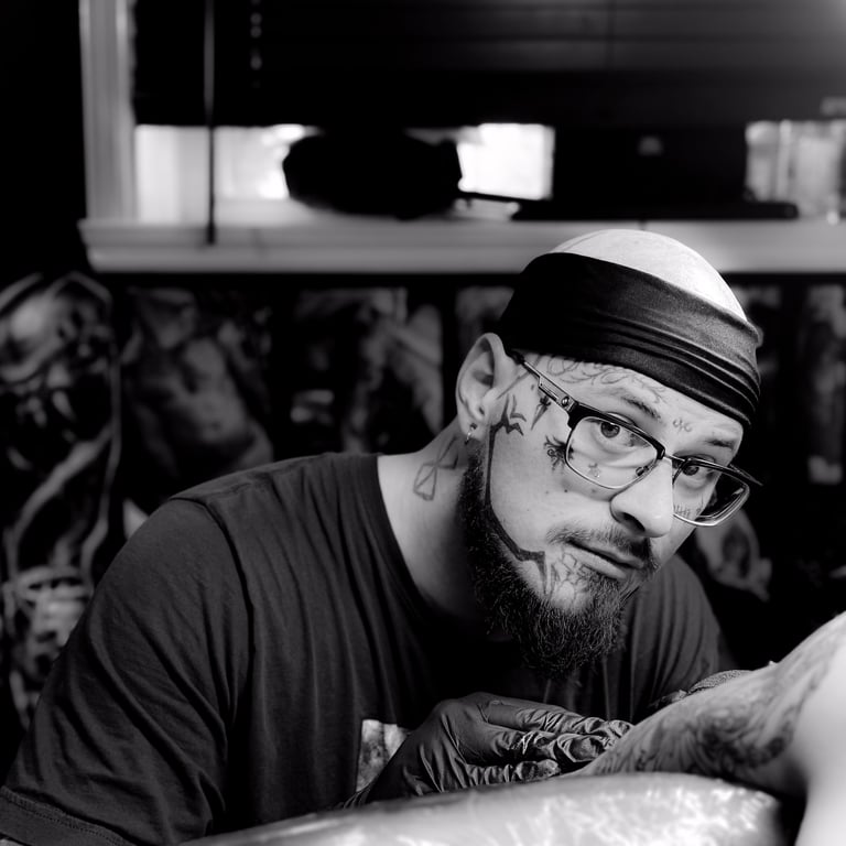 Joey specializes in black and gray tattoos. He adopts a variety of styles, such as realism, dark trash, dot work, mandalas and lettering.